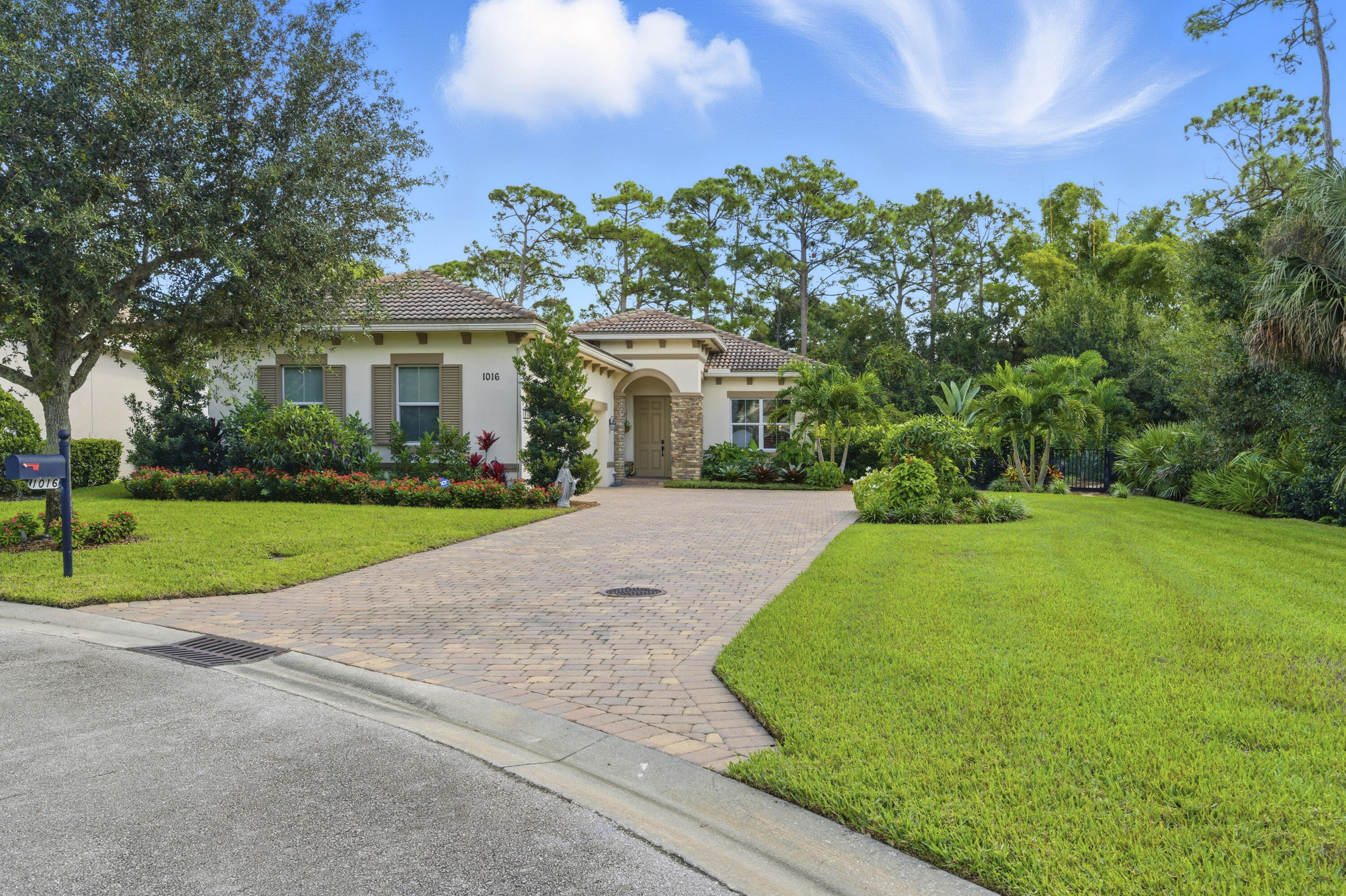 Welcome to Savannah Estates (aka Venetian Village), a gated community of just 50 homes. This well maintained CBS 3BR/2.5BA pool home offers a 3 car air conditioned garage with epoxy flooring and is ideally located on a cul de sac. Built in 2013, features include impact windows, crown molding, tiled common areas, and refreshed 2024 landscaping with remote irrigation. The driveway, patio, and pool deck are covered with brick pavers. Enjoy a screened lanai overlooking the heated saltwater pool and spa with lighted waterfalls (2024) perfect for entertaining or relaxing in style. A kitchen window was added for more natural light and a pool view. Convenient to I 95, schools, shops, medical services dining, parks, beaches, and golf. PBI is approx 45 minutes away. Up to three pets welcome.