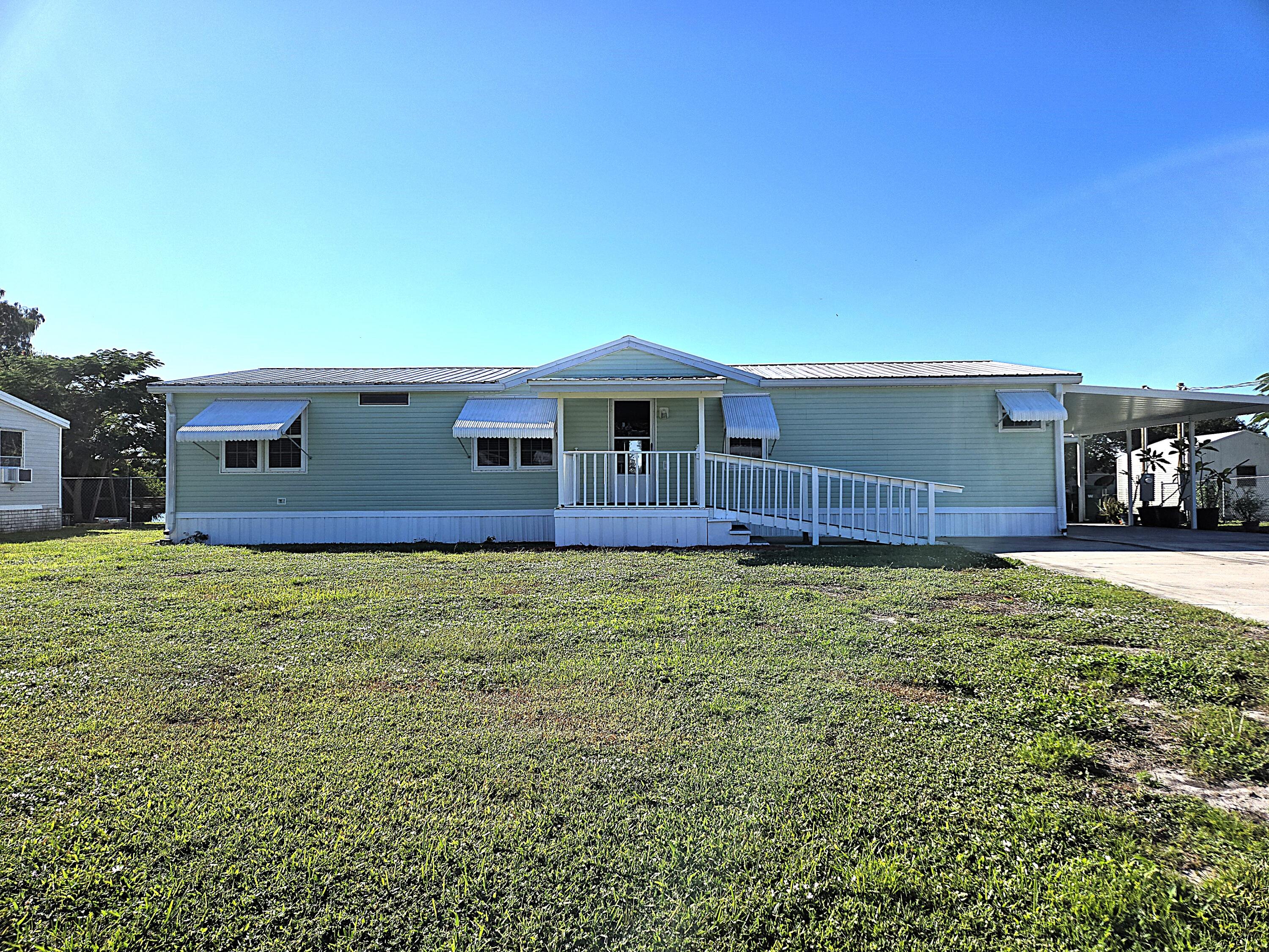 TAYLOR CREEK LAKEFRONT LIVING AT IT'S FINEST Mobile home features 1,568 sf under air and 2,274 sf total living space. The open & airy living space blends comfort, style & functionality; ideal for entertaining, relaxing, or cozy movie nights. Kitchen has tons of cabinet storage, expansive countertops, center island & pantry. Spacious master w/built in safe for added security. Upgraded windows. Ceiling fans offer year round comfort. French doors open to Florida Room, the perfect retreat for morning coffee or evening relaxation with stunning lake views. Private dock is ideal for fishing, kayaking or simply enjoying stunning sunsets. Oversized detached 1 car garage. Carport. Easy access to shopping, dining and Lake Okeechobee. Perfect for 1st time buyers, winter retreats or investors.