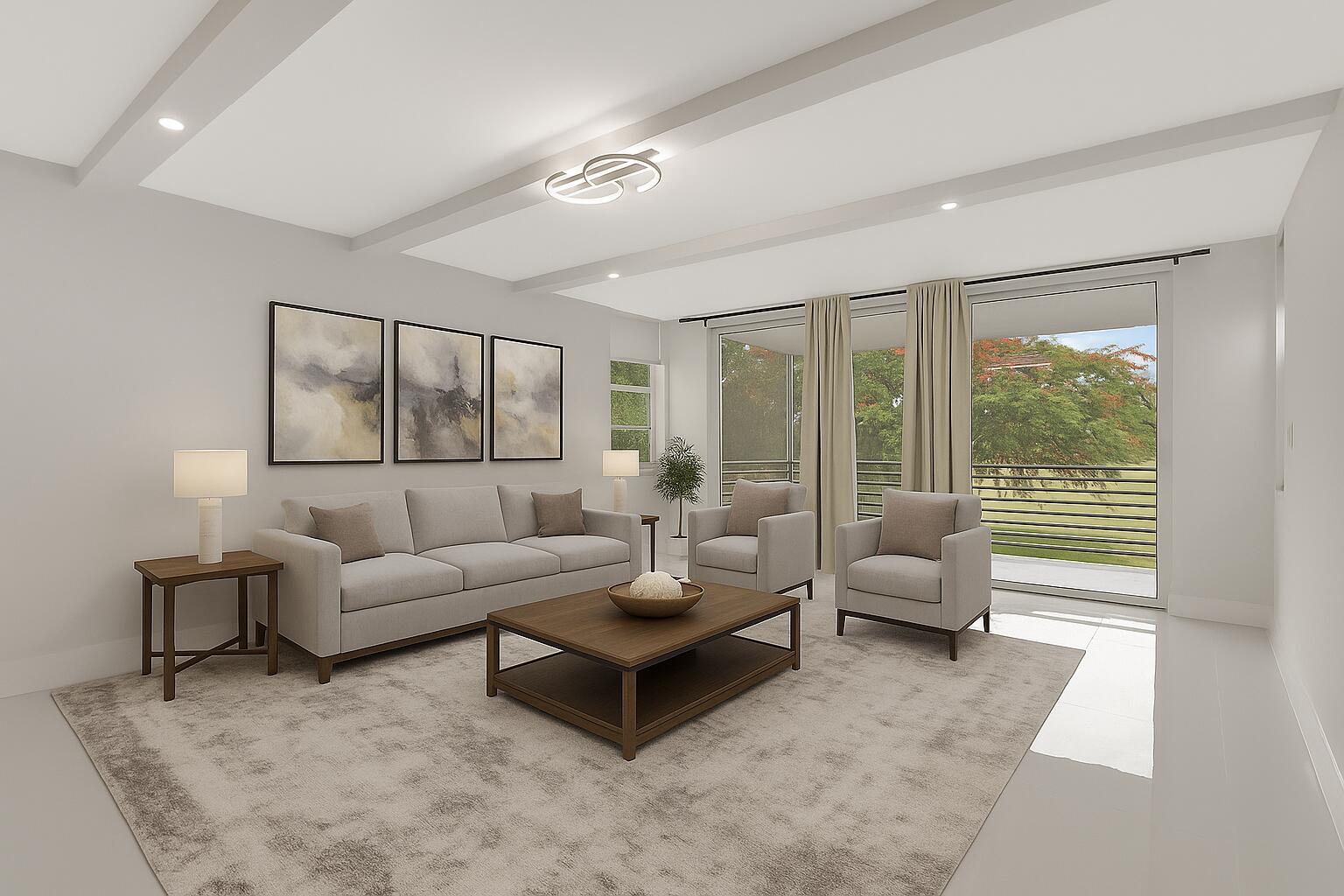 Welcome to this stunning fully renovated 3 bedroom, 2.5 bath condo in the highly sought after Palm Aire community! Designed with elegance and modern comfort in mind, this home offers high end finishes and an open concept layout, perfect for entertaining or relaxing in style. Step into a bright and spacious living area with sleek flooring, designer lighting, and floor to ceiling sliders that invite in natural light. The gourmet kitchen boasts double shaker cabinets, quartz countertops, stylish backsplash and a full suite of Samsung stainless steel appliances. The primary suite is a true retreat