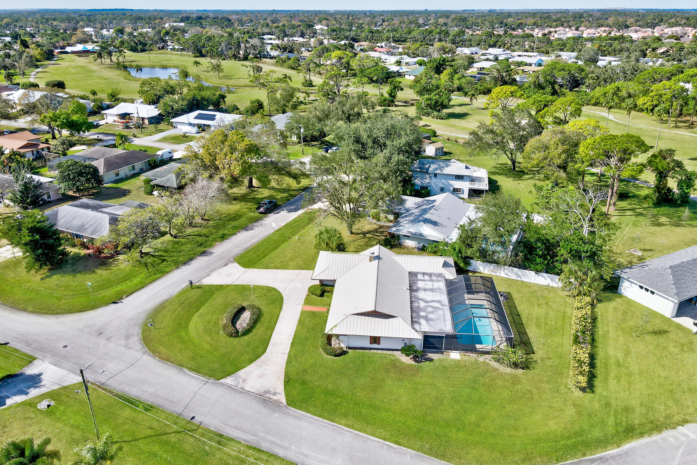 Discover the epitome of family living in this charming 3 bedroom, 2 bathroom single family residence nestled in a serene, well established neighborhood, perfect for those seeking tranquility and convenience. This home stands out with its robust construction featuring a 2021 metal roof and a spacious 2156 sq/ft living area, all on a generous .32 acre corner lot with a welcoming circular driveway. Boasting a split floor plan that promotes privacy, the masterful design integrates a sizable living room with sliders that lead out to a screen enclosed, freshly refinished inground poolyour private oasis for relaxation or entertaining. The family room, warmed by a cozy fireplace, flows seamlessly into a kitchen equipped with ample cabinets, vast countertop space, and a convenient recipe/ desk area, complemented by a snack bar and an inviting family dining area. Additional luxuries include a formal dining room, spacious master bedroom with his/her walk in closets. 2018 A/C unit, and a 2017 water heater. Embrace the Florida lifestyle with proximity to shopping, dining, schools, parks, golf courses, beaches, and major roadways, all ensuring your family's needs are always within reach. This home isn't just a residence; it's the cornerstone of your family's future memories.