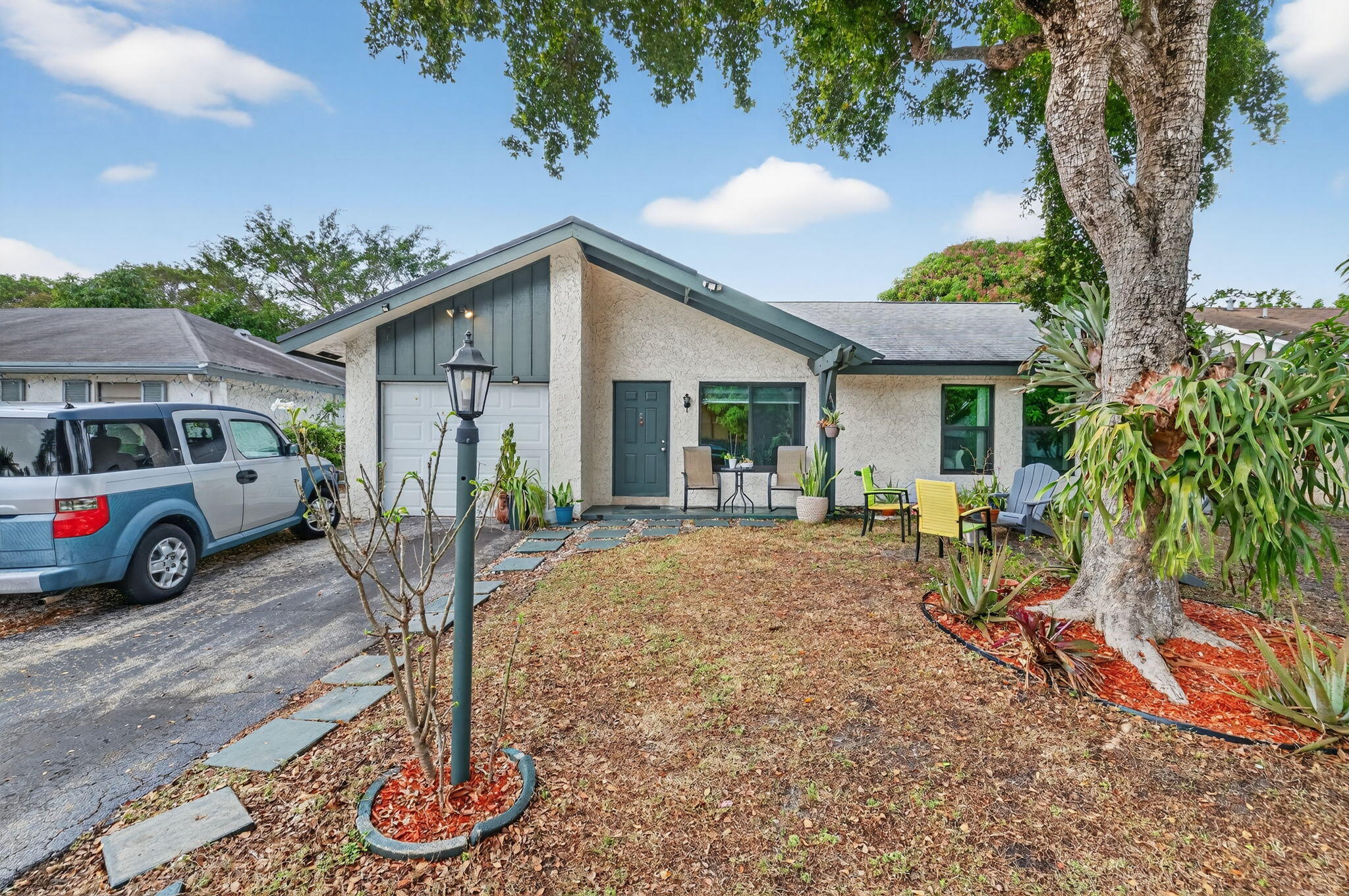 This well maintained 3 bedroom, 2 bath residence offers a functional layout with an open kitchen design and tile flooring throughout the main living areas. The converted garage provides flexible space suitable for a variety of uses. Can be converted back to garage easily. The primary bedroom features an upgraded bathroom, while hurricane impact windows add peace of mind. Solar panels contribute to energy efficiency and long term savings. Conveniently located near major roadways, shopping, dining, and local amenities.