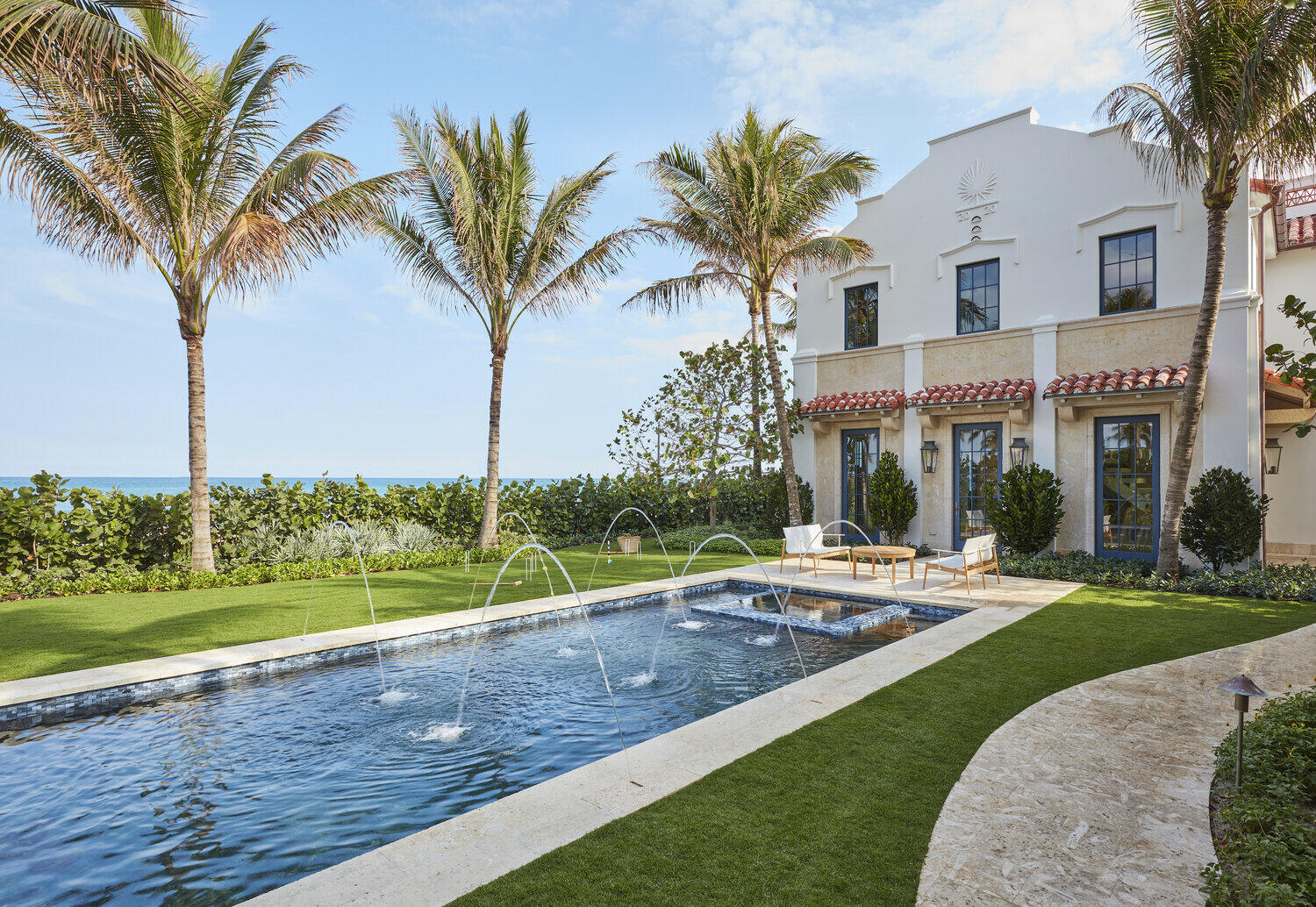 A rare opportunity to purchase a one of a kind 8,645 sq. ft. home located one block south of world famous Worth Avenue and overlooking the sandy beach and sparkling blue ocean. This premier residence is among four properties developed by the Frisbie group in 2021 and designed to offer the best possible views from the top two floors while creating beautiful and useful space on the lowest level. This is the closest Ocean Front Home to the center of town! This 5 bedroom residence with 6.5 baths can accommodate many different lifestyles. The architects created a thoughtful layout for sophisticated entertaining or simply enjoying the comfort of an easy living home. The main level offers nearly 10' ceilings, glass feature walls, a spacious and elegant living room, library/office overlooking the ocean, a generous dining room, butler's pantry, powder room and contemporary custom kitchen open to both the main part of the house and a less formal living area/TV den to the West. Off this area is an outside loggia for al fresco dining. To complete this floor is an oversized two car garage accessed from the den.