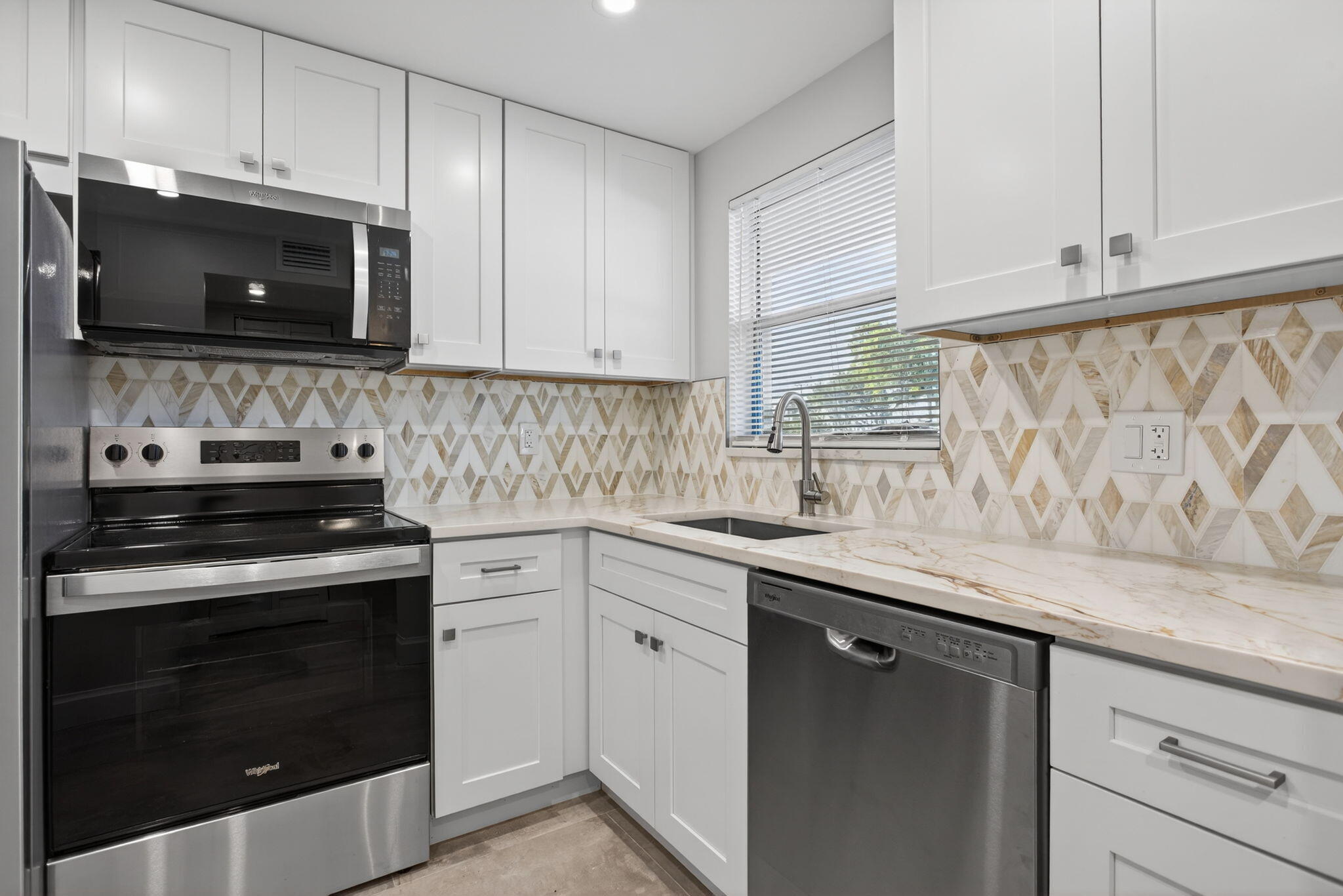 Renovated ground floor garden residence with a private screened in patio. Move in ready home features a completely updated interior, including new kitchen cabinetry with quartz countertops, brand new appliances, new ceramic tile flooring throughout. The spacious primary suite offers a walk in closet and a fully upgraded bath with double vanities and a walk in shower. Additional recent improvements include hurricane impact windows, a new AC system and water heater, providing comfort and peace of mind. The condo fee covers cable, exterior insurance, and water for added convenience. Community amenities include a pool, sauna, clubhouse, cabana, picnic area, and on site laundry facility.