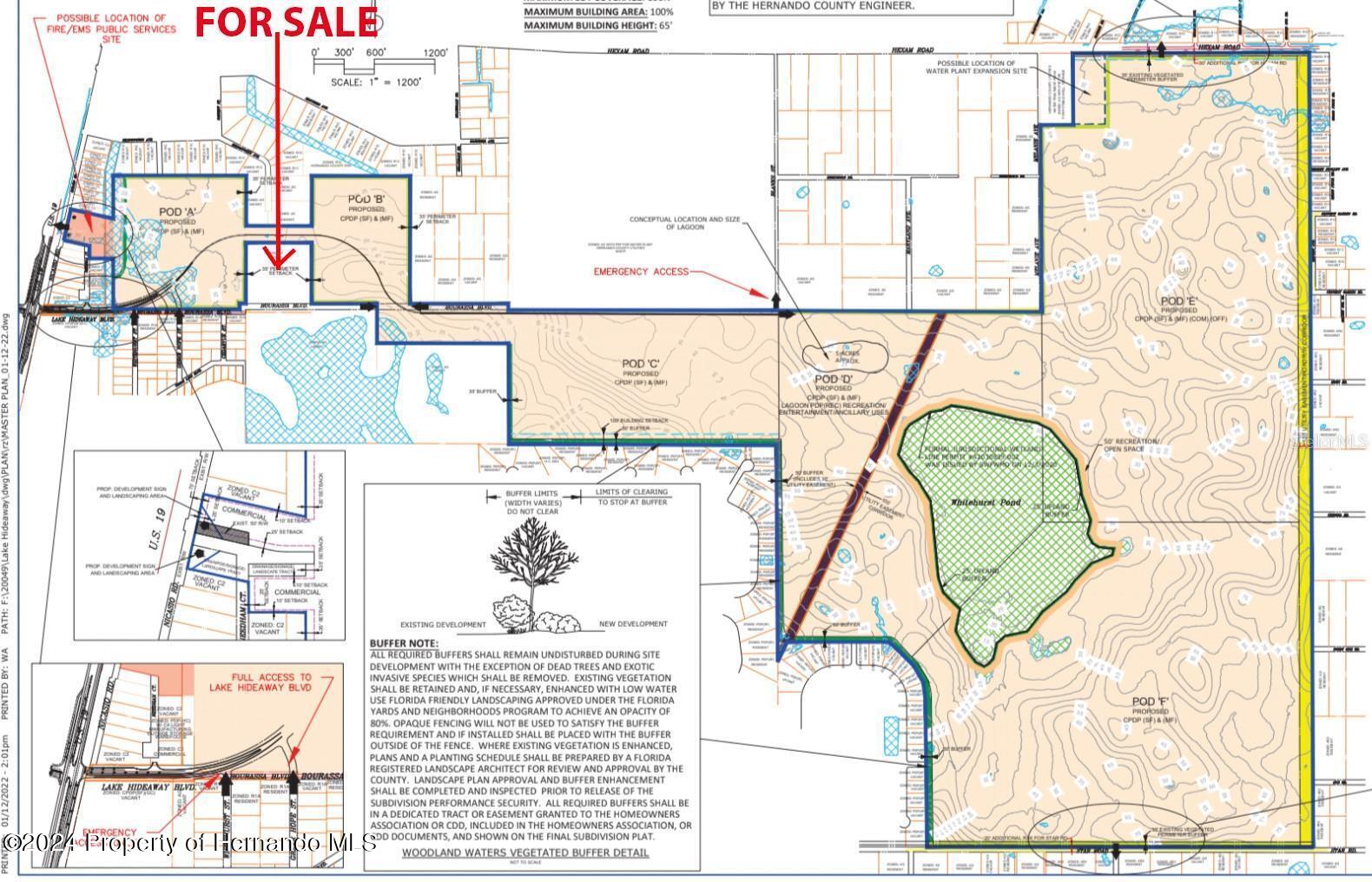 INCREDIBLE OPPORTUNITY for a developer to purchase 9.1 acres in the middle of Sandal Key Lagoon Development that is going in with 3700 homes and the country's newest man made lagoon pool in Hernando County east of US 19 and north of State Road 50 (Cortez). It's approved and land site work is currently being done for 2400 single family detached homes, 644 attached townhouses, 656 senior adult attached housing, a new charter school, community recreation, and for new supportive commercial and office spaces. This 9.1 acre property should be able to be rezoned for high density residential based on the approval of the surrounding property. Potential for apartments or townhomes. Public sewer and water will be available nearby with the Hidden Lagoon development going in now. The excitement for the coming Hidden Lagoon Community is HIGH, so call for more details! ***Capitalize on this extremely unique opportunity!*** The area offers so much and is a fast growing area!! Only 10 minutes to the Suncoast Parkway/Veteran's Expressway for easy and fast access to Tampa! Straight drive to Tampa International Airport which is only 45 minutes!! 10 minutes to the beach and sunsets and Pine Island! 5 minutes to kayaking, paddle boarding, swimming in the the crystal clear Weeki Wachee Spring and River with the manatees or enjoy the Weeki Wachee State Park on the main spring head with Buccaneer Bay Water Park with tubing, slides, splash park, boat rides, and the world famous Live Mermaid Shows! 10 minutes to Hernando Beach Coastal Community for boating, fishing, swimming, water sports, jet skiing, hanging out on your boat at the flats with other boaters, beach bars and restaurants!! A short boat ride from Hernando Beach takes your to Anclote Island for an amazing day at the white sand and glowing clear waters of the island! Travel North from this site 10 20 minutes and enjoy Homosassa River and Crystal River swimming the clear springs with the manatees and eating at the restaurants/bars on the river...pull your boat right up to the tiki bars!! Quaint historic towns in every direction from Brooksville, Inverness, Crystal River, Dade City and more...enjoy the old town squares with coffee shoppes, antique and decor shoppes, festivals, craft and art shows, music concerts and so much more! The area offers so much and yet is so close to Tampa! Just over 1 hour to TOP US BEACHES!! Call today for more details!